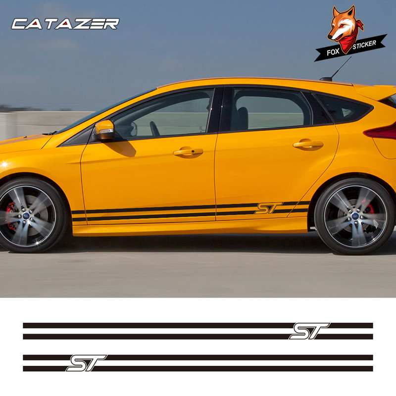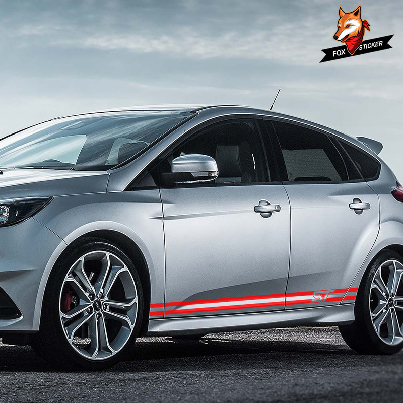 Car Decoration 2PCS/Lot Auto Body Decor Vinyl Decals Styling Stickers for Ford Focus ST Sport Door Side Skirt Strip Reflective